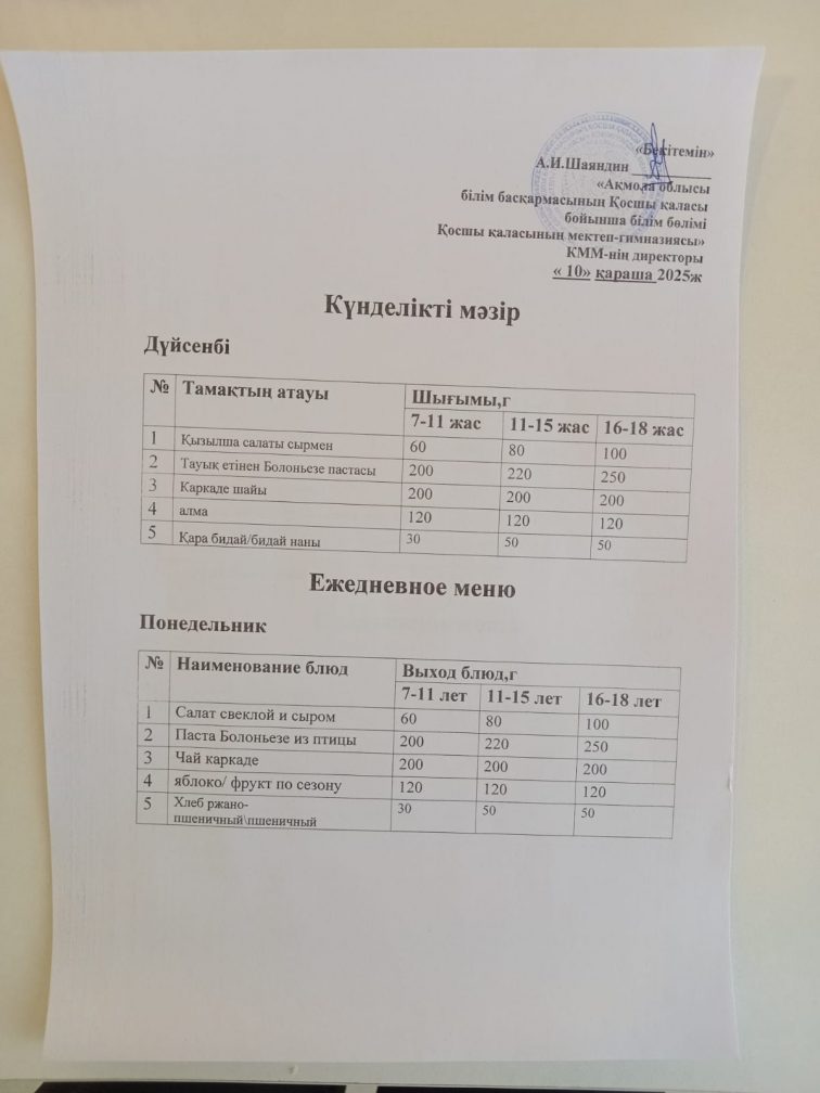 18 03 2025 КҮНГІ АС МӘЗІРІ