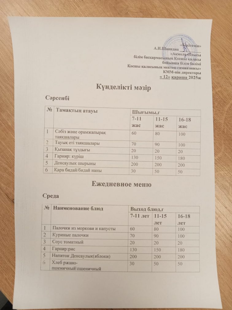 25 04 2025 күнгі ас мәзірі