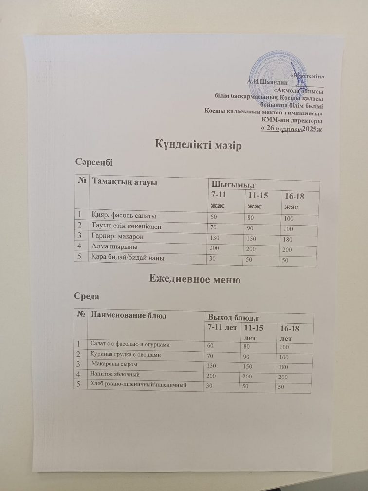 25 04 2025 күнгі ас мәзірі